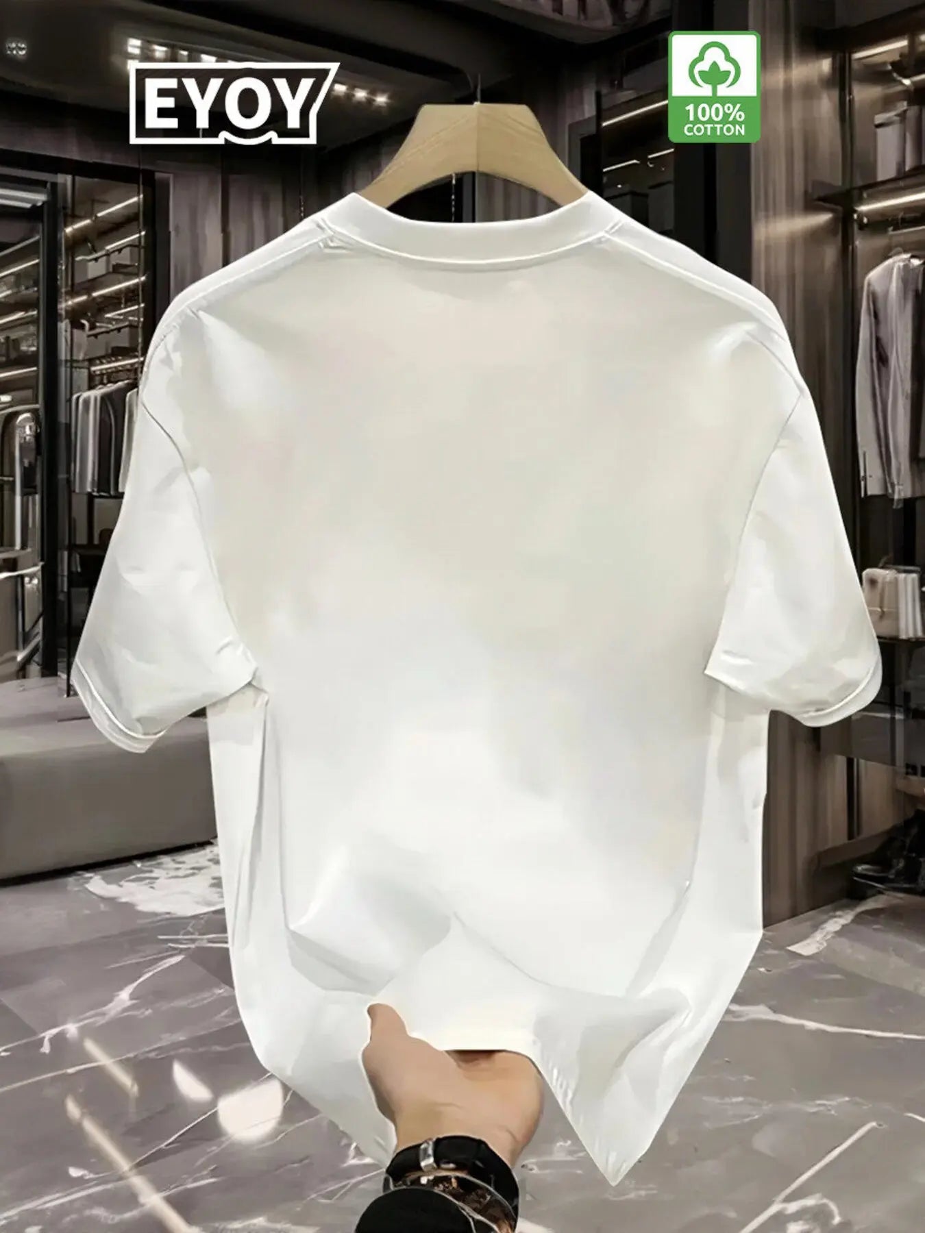 T-Shirt Homme 100% Coton Blanc - Col Rond Manches Courtes Casual Formel Streetwear