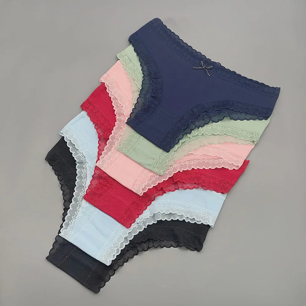 Lot de 5 Culottes Femme Dentelle & Coton - Shorty Sexy Couleurs Unies Confort Premium