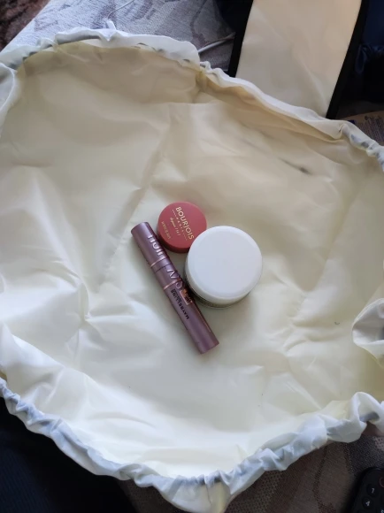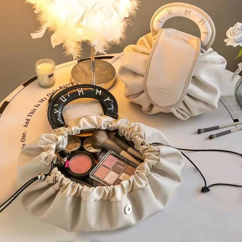 Sac de maquillage portable grande capacité avec cordon de serrage, idéal pour l'usage quotidien et les voyages.