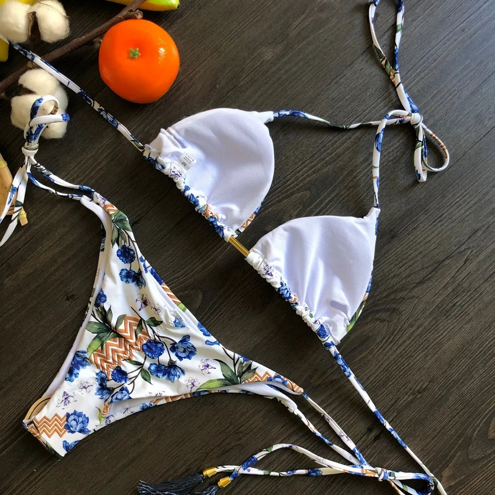 Bikini Femme Micro Brésilien - Imprimé Plumes & Bandage Sexy