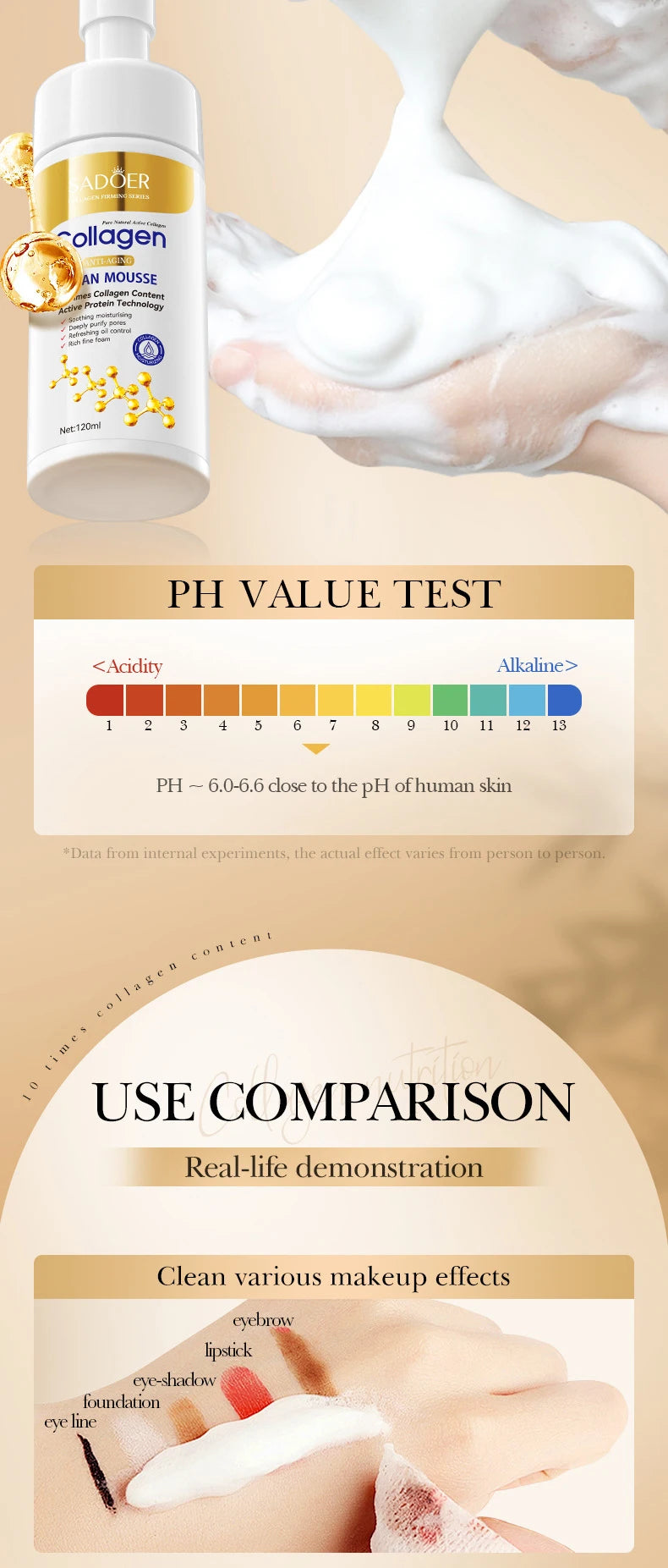 Nettoyant Visage Mousse Collagène SADOER - Soin Anti-Rides Hydratant Nettoyage Profond