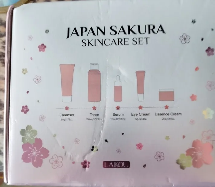 Coffret Soin Visage Sakura 5pcs - Nettoyant Sérum Crème Yeux Visage Protection Solaire Voyage Femme