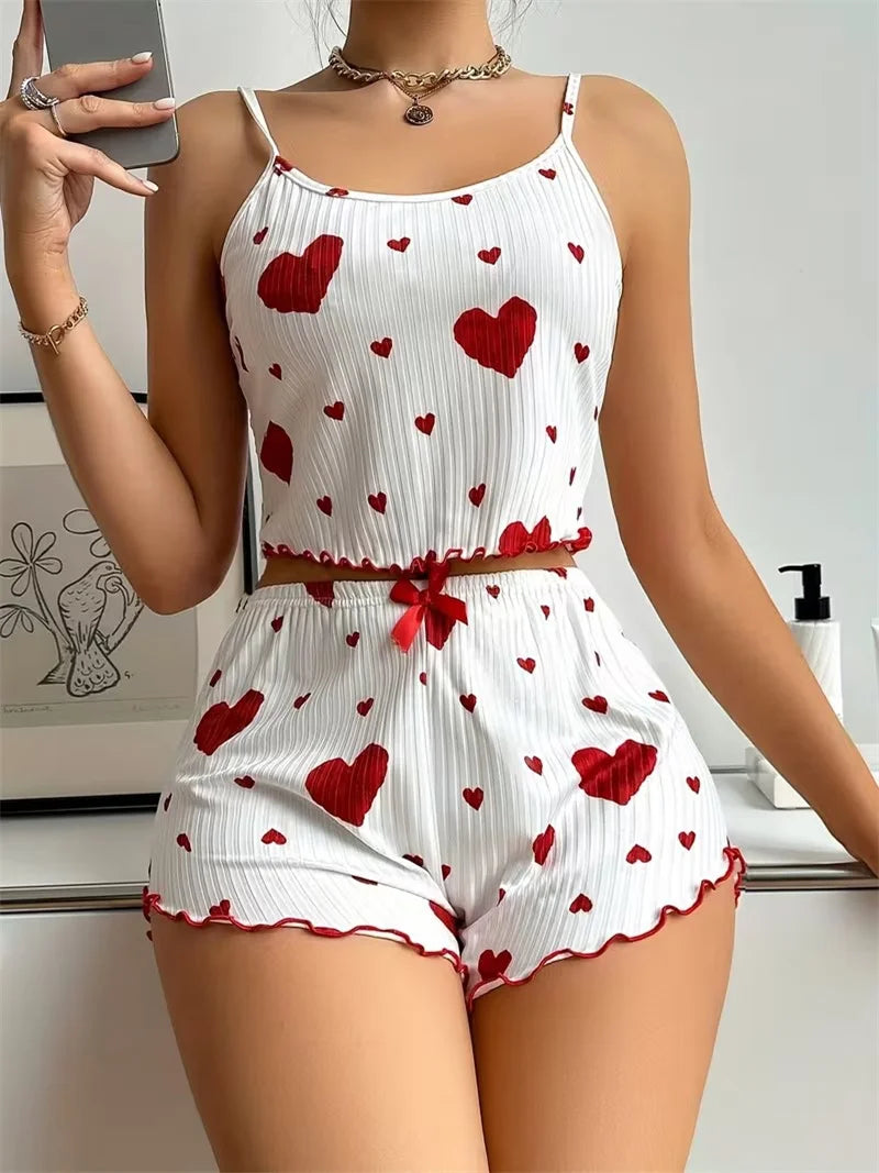 Ensemble Pyjama Débardeur Bretelles Spaghetti + Short - Imprimé Homewear Lingerie Sexy Femme