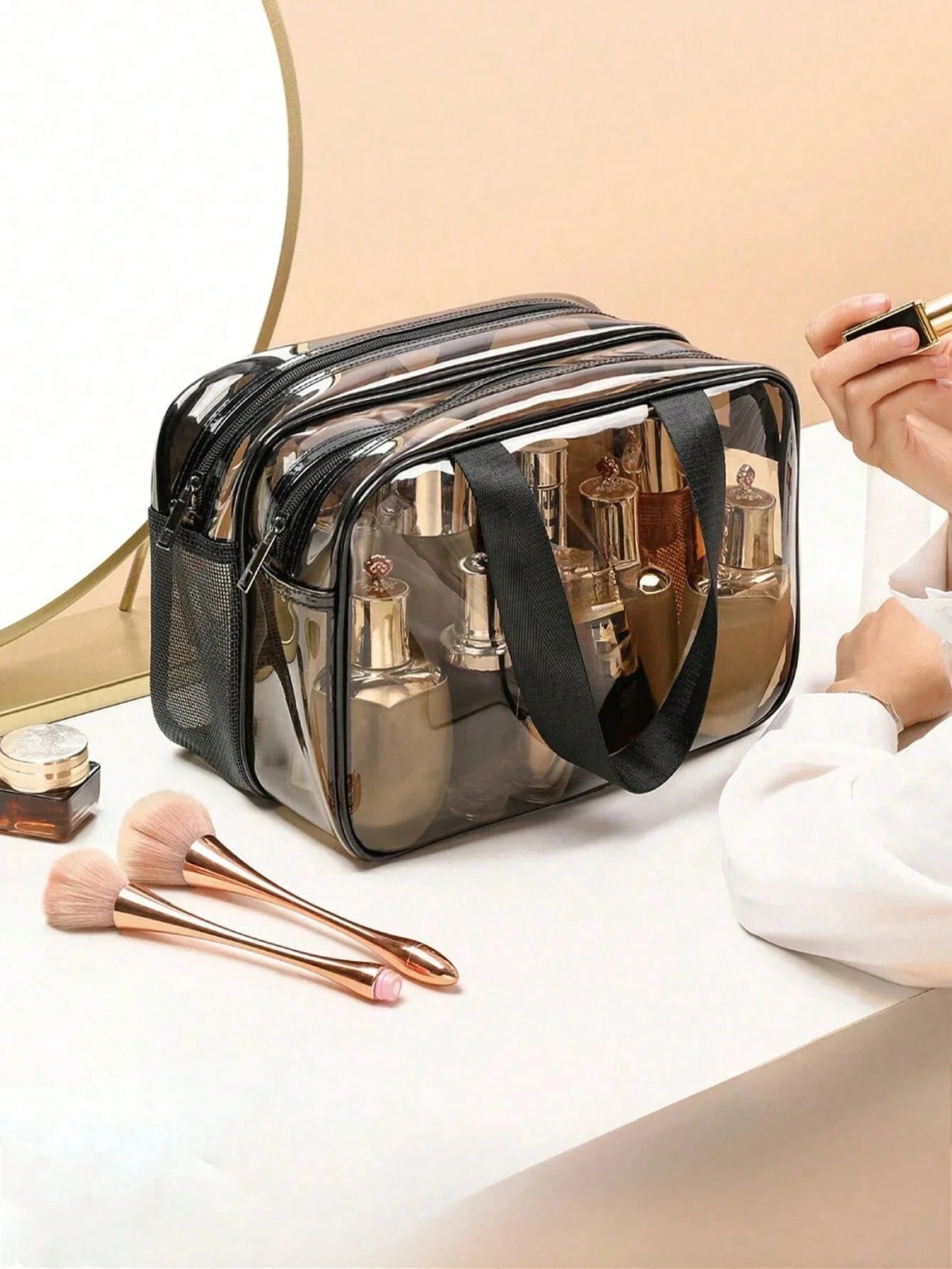 Organisez et transportez vos cosmétiques avec style grâce à cette trousse de maquillage transparente pratique. Parfaite pour les voyages, elle vous permet de voir instantanément tous vos produits.
