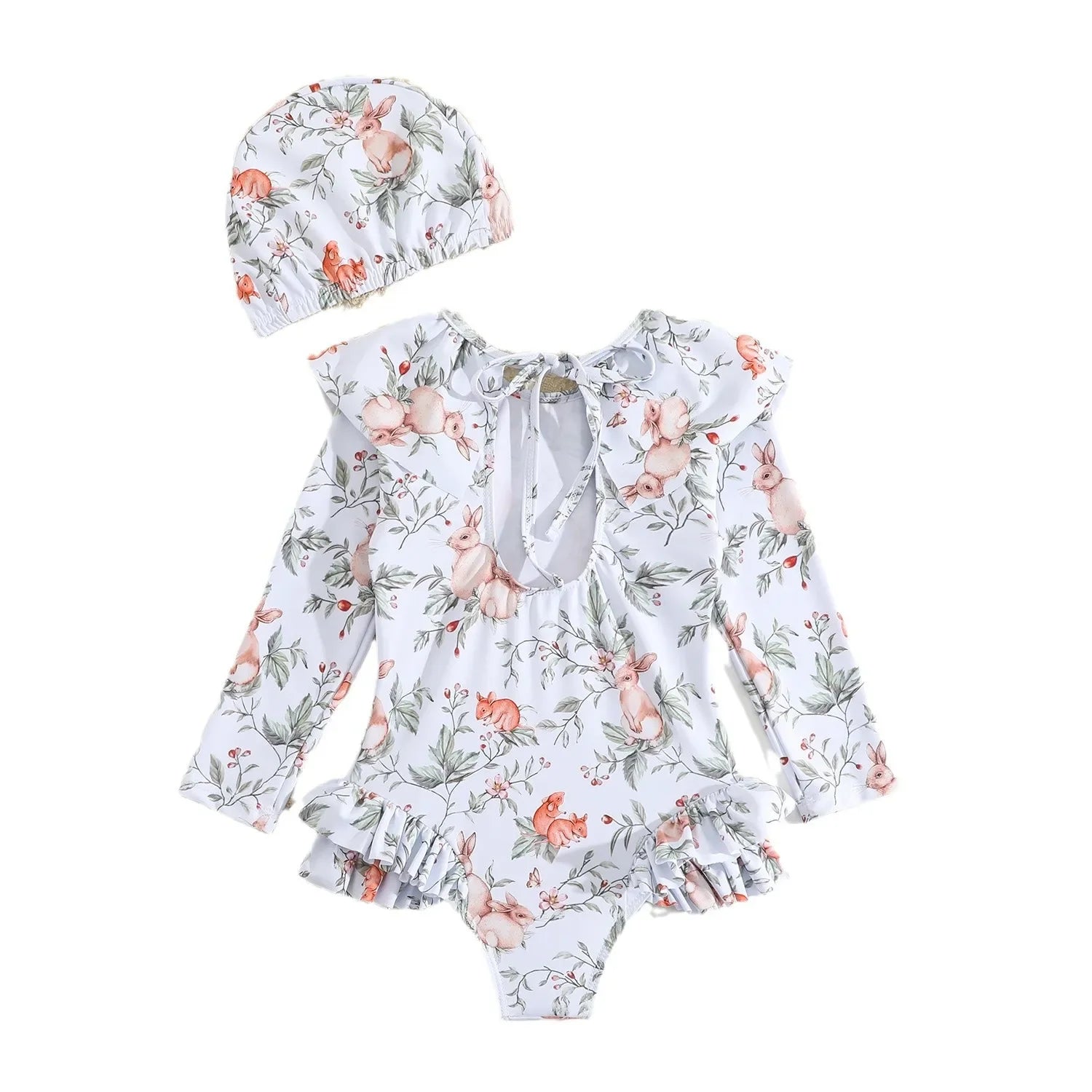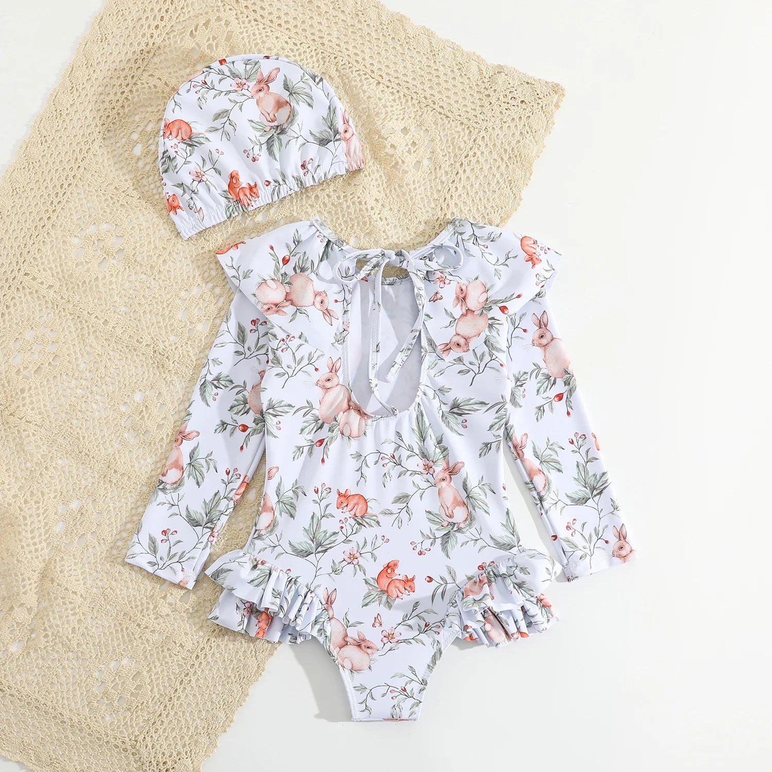 Maillot de Bain Bébé Fille Une Pièce Lapin - Manches Longues Anti-UV