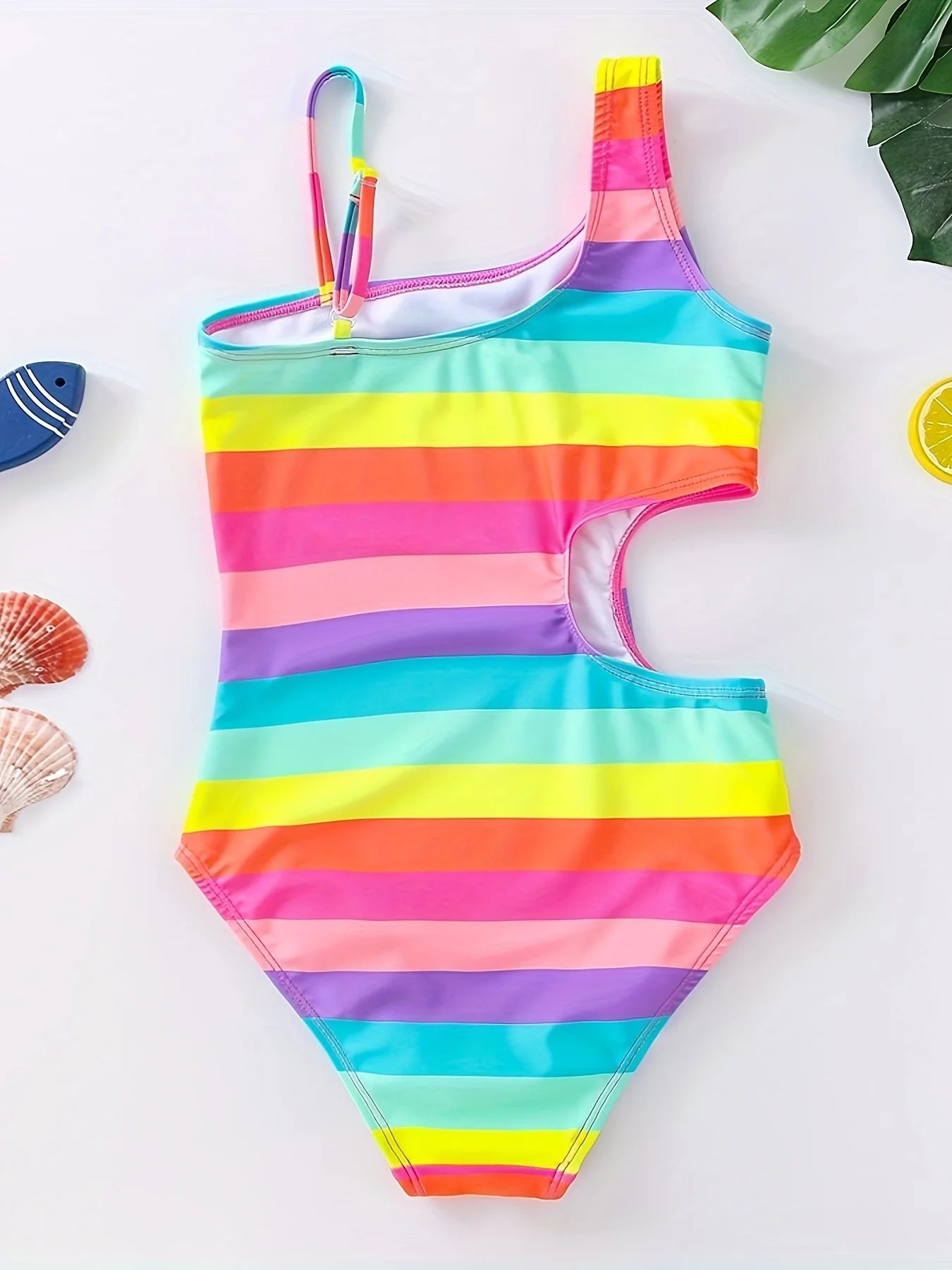 Ce maillot de bain une pièce avec rayures horizontales arc-en-ciel est parfait pour les filles qui aiment la couleur et le style estival ! Avec son design rayé multicolore et sa taille apparente tendance, ce maillot allie confort, style et gaieté pour toutes les aventures à la plage ou à la piscine.
