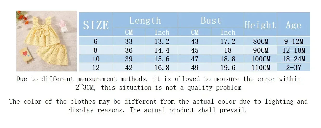 Adorable ensemble d'été pour bébé fille avec imprimé géométrique et noeud. Composé d'un top à manches courtes et d'un short assorti. Idéal pour la plage et les sorties estivales.
