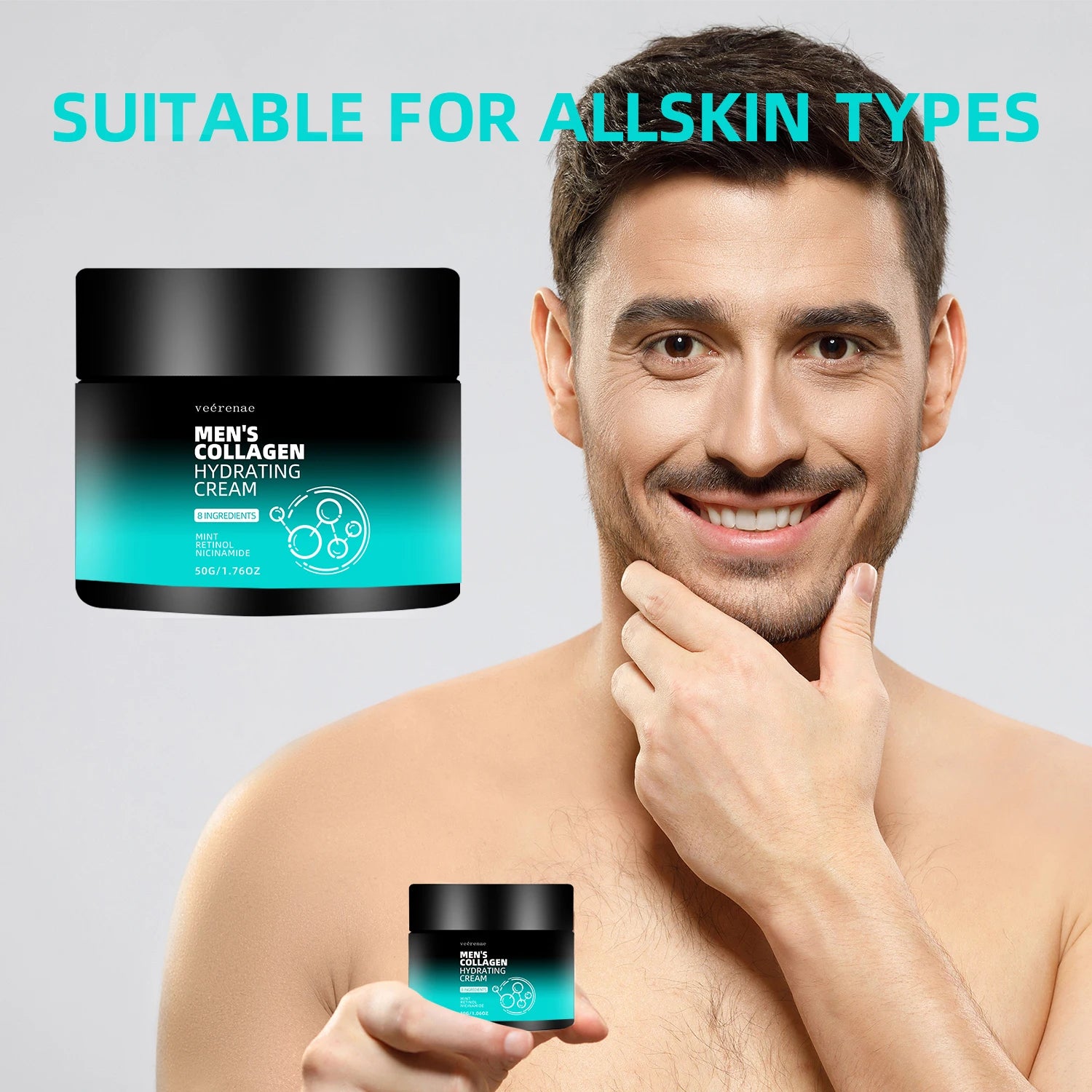 Adoptez la crème hydratante collagène vérenae pour une peau d'homme raffermie, hydratée et équilibrée au quotidien.