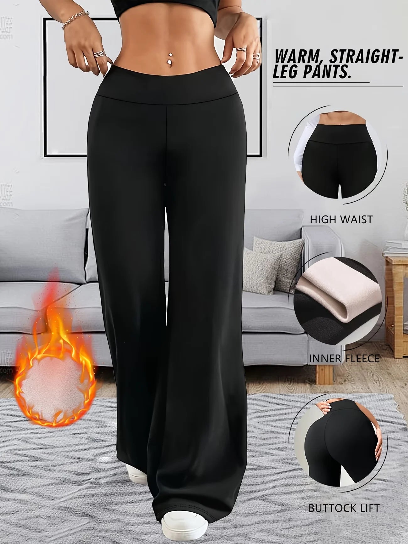 Pantalon Taille Haute Doublé Polaire Femme - Jambes Larges Chaud Élégant Casual