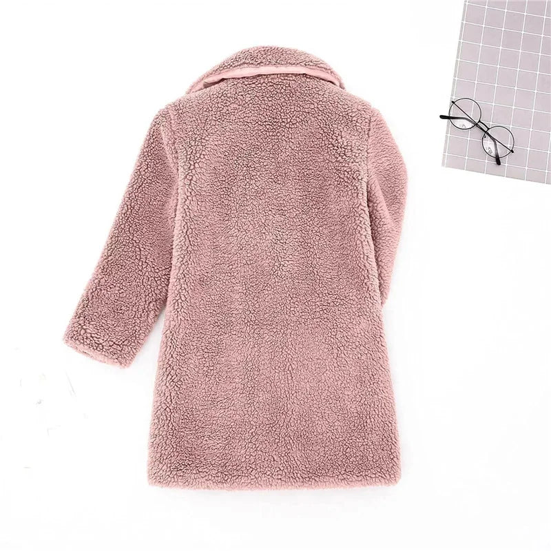 Veste Laine d'Agneau Enfant - Manteau Chaud Hiver Polaire - Boutons Simple Rangée 2-14 Ans