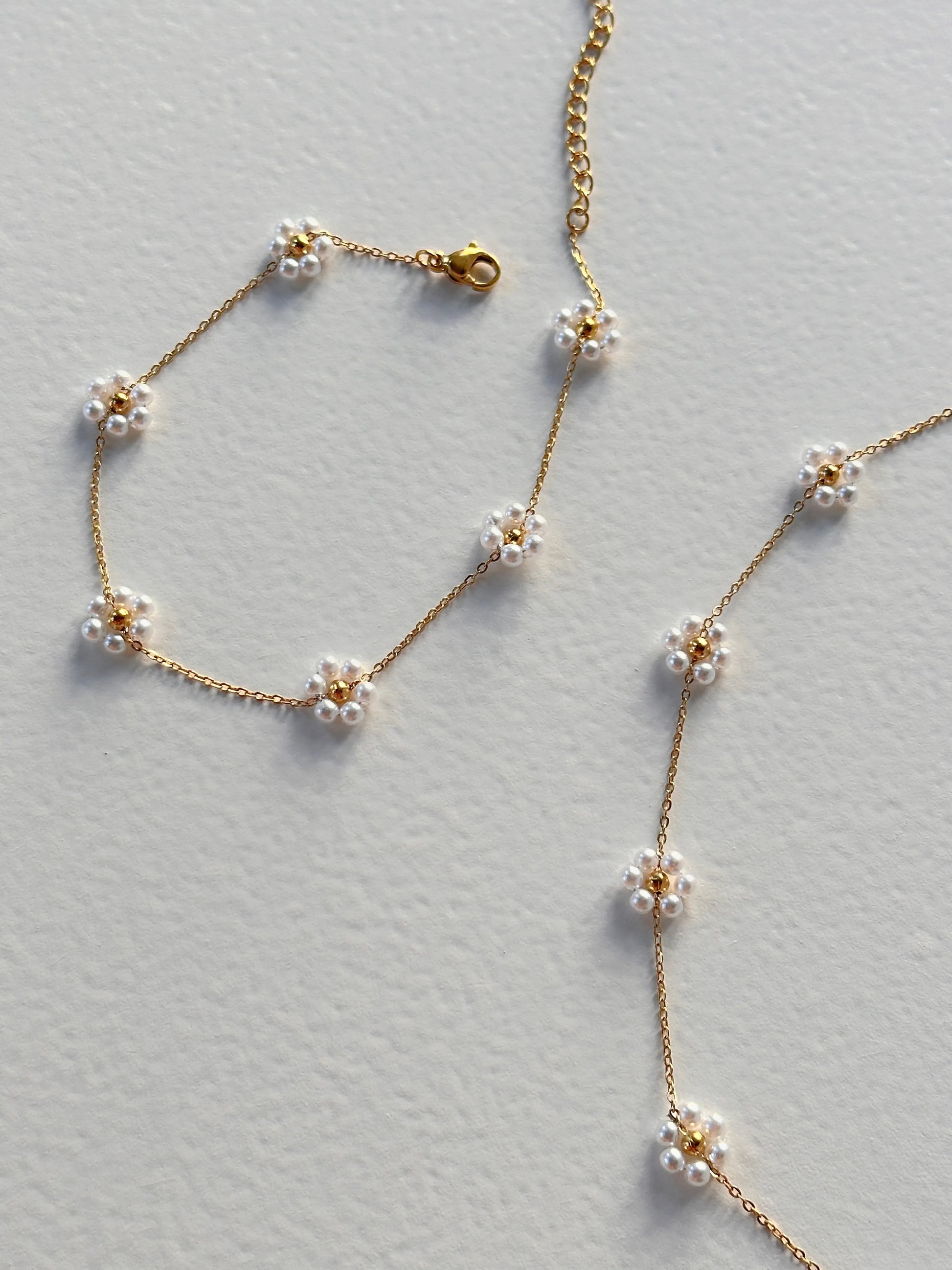Craquez pour ce set bracelet et collier bohème en acier inoxydable orné de perles et zircons ! Bijoux waterproof et élégants.
