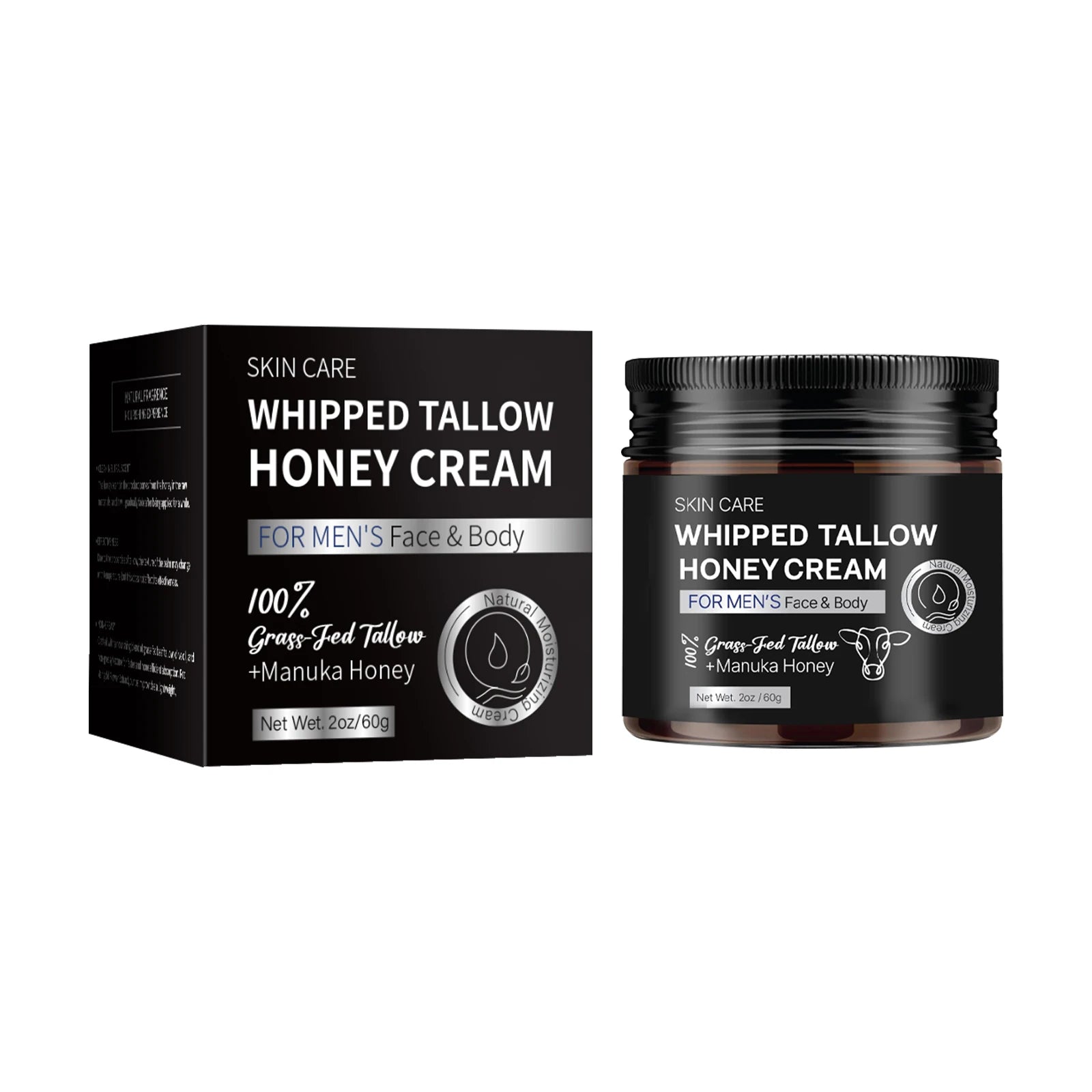 Crème Fouettée Tallow Miel Homme 60g - Hydratant Naturel Suif Nourri Herbe Miel Manuka Soin Visage Corps 2025