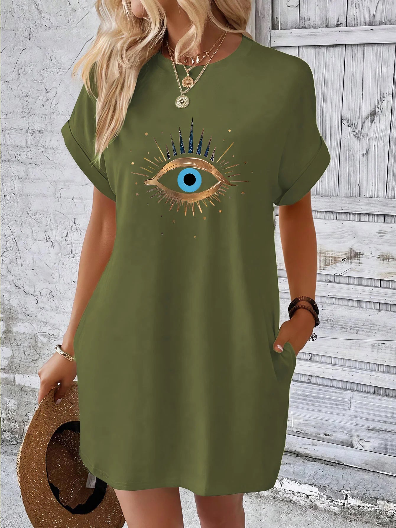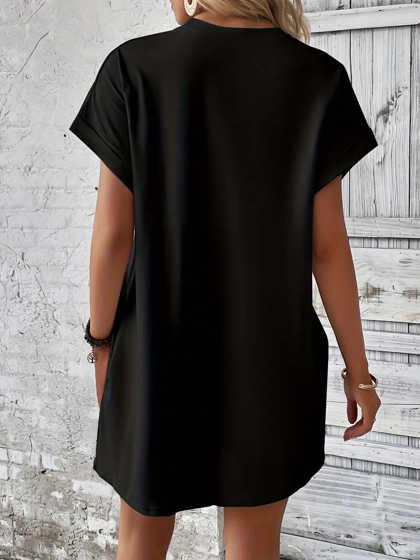 Découvrez cette robe noire d'été loose au style décontracté parfait pour les journées ensoleillées. Avec son imprimé tendance, son col rond et ses manches courtes, elle allie confort et élégance.