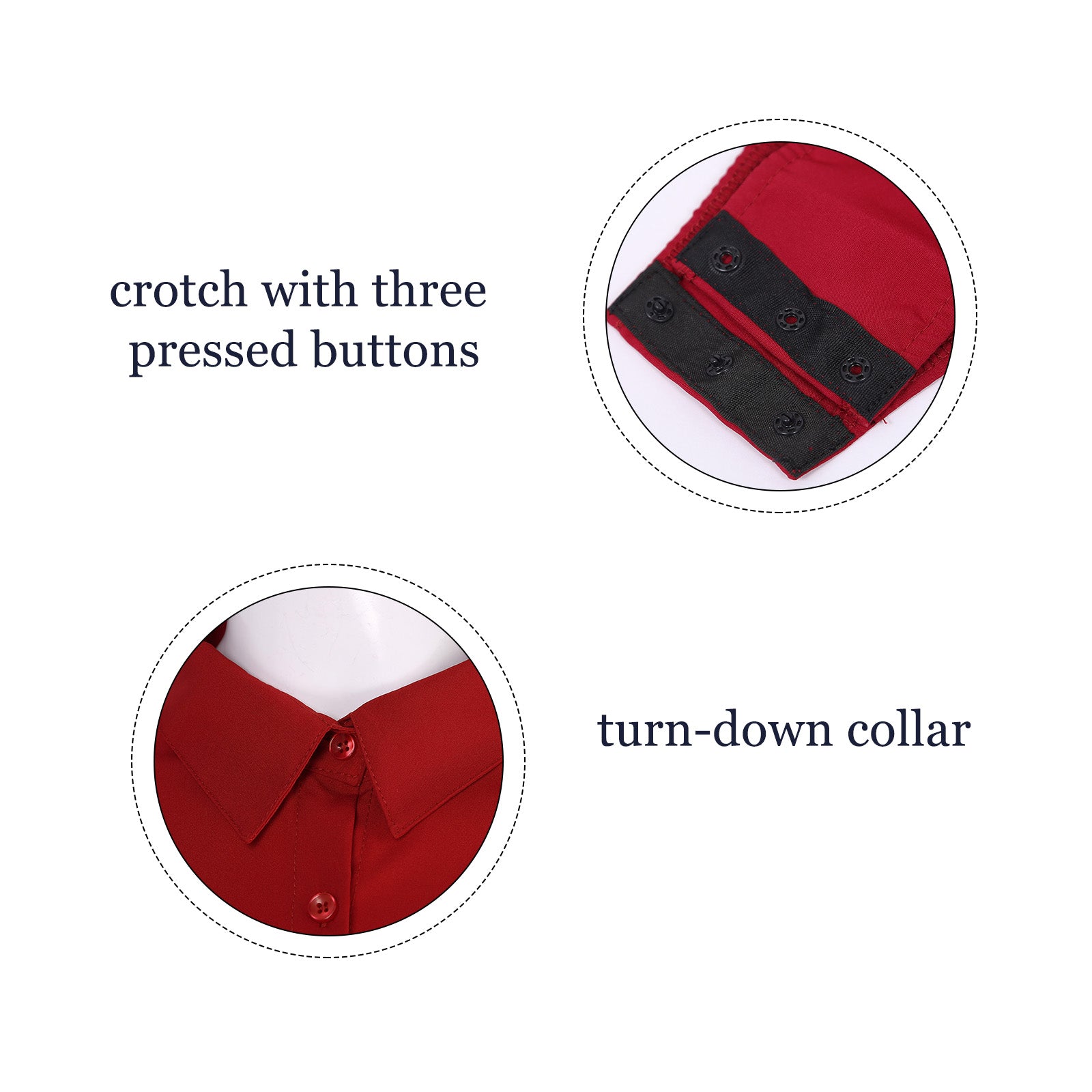 - Boutons pression à l'entrejambe : confort et maintien optimal