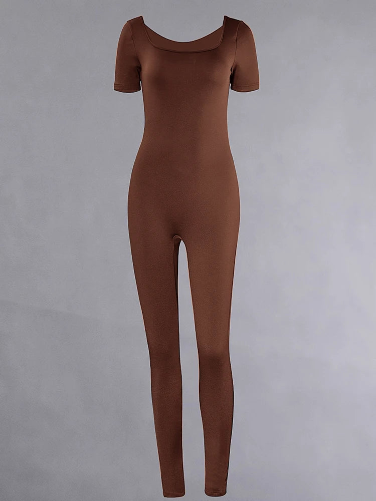 Combinaison Femme Sport Manches Courtes Bodycon