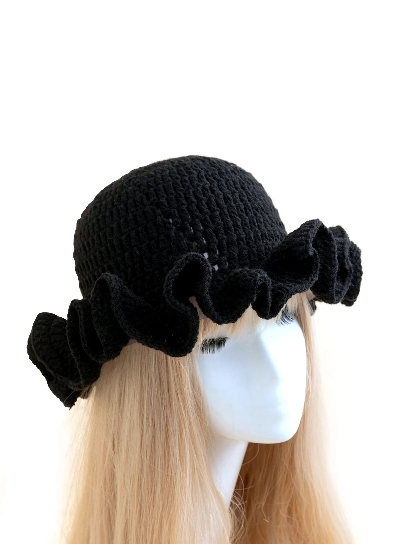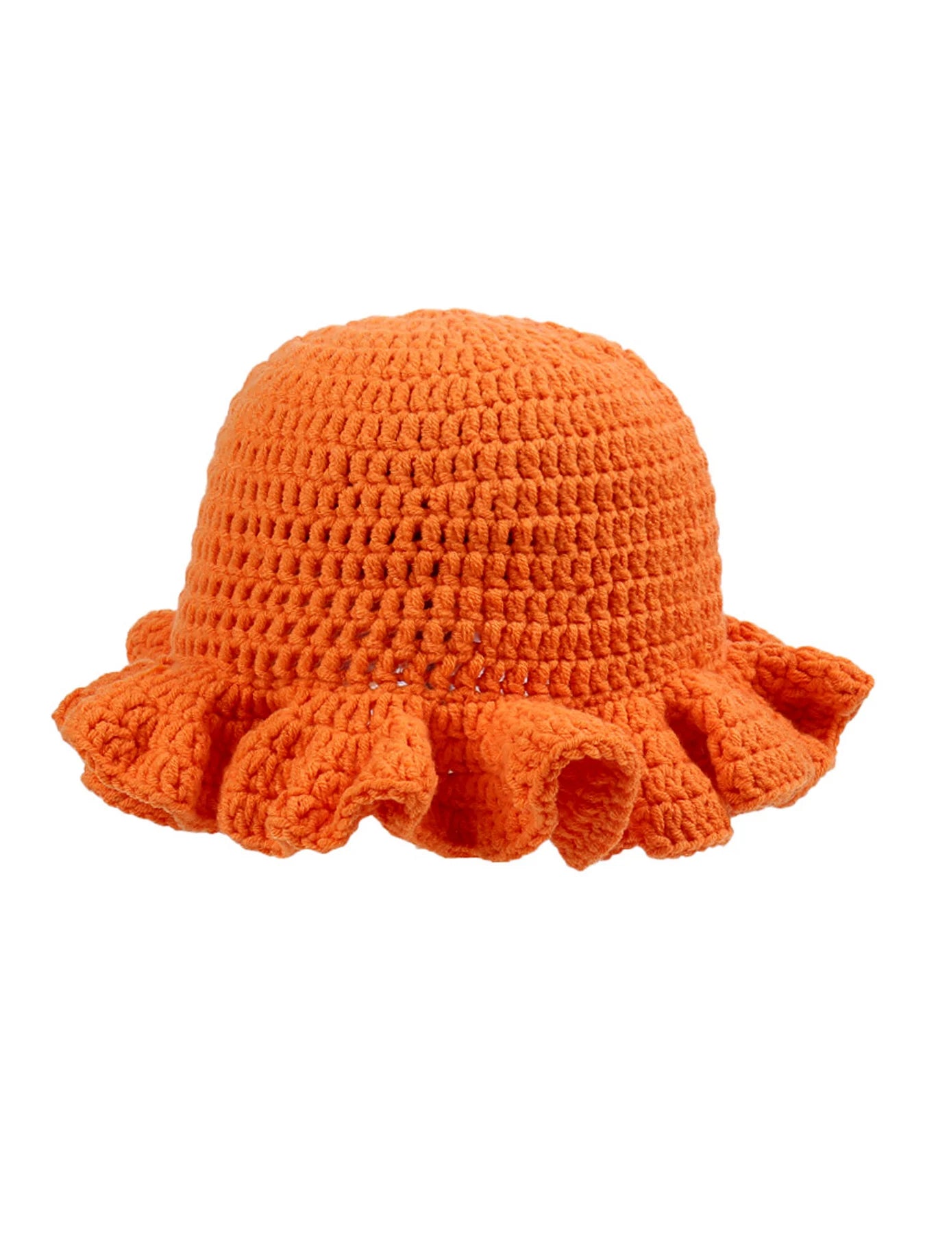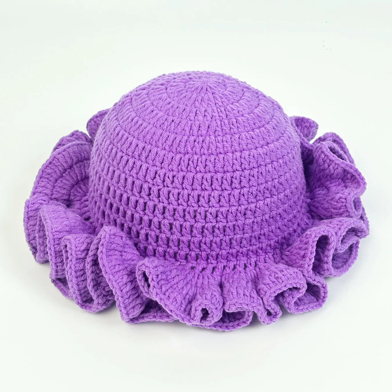 Chapeau Bob Tricoté Moelleux Femme - Bonnet Crochet Ajouré avec Volants Style Pêcheur pour Automne Hiver